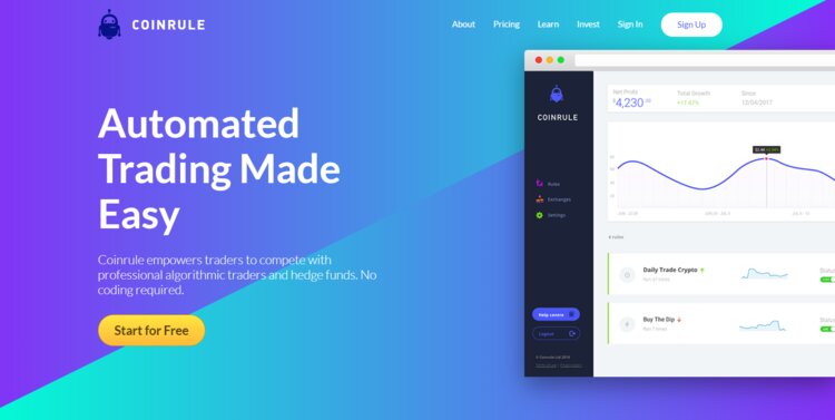 Coinrule is just an algorithmic trading tool for Bitcoins, Kraken, Coinbase Pro, and other cryptocurrency exchanges.